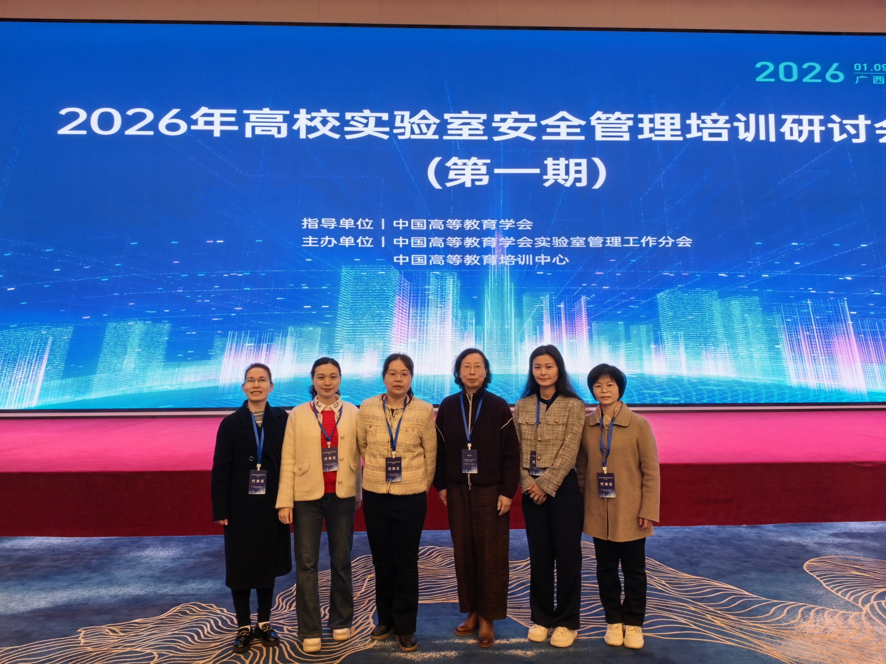 1月10日至11日,由中国高等教育学会指导、中国高等教育培训中心主办 “2026年高校实验室安全管理培训研讨会(第一期)”在广西南宁顺利召开。来自全国各高校的实验室管理负责人、安全专员及相关教师代表齐聚一堂,共同探讨实验室安全管理的最新理念与实践路径。实验动物中心何敏主任带领中心实验室管理人员、安全专员和相关教师等6人参会。
